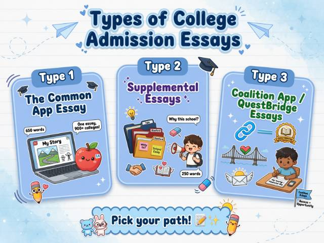 Here's where a lot of students get confused. There isn't just one essay. Depending on where you apply, you'll likely write several and they each serve a different purpose.